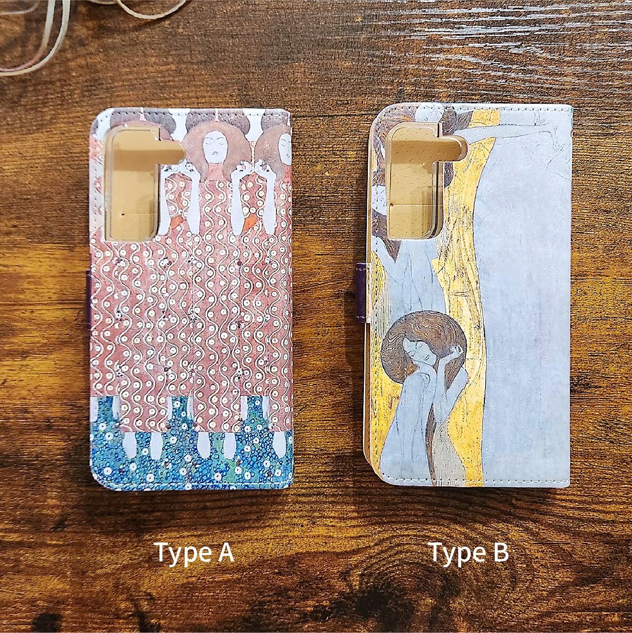 グスタフ・クリムト「ベートーヴェン・フリーズ 第3場面(歓喜・接吻)」手帳型スマホケース(iPhone・Android対応)#sc-0105-b【受注生産・通常5~6営業日発送】