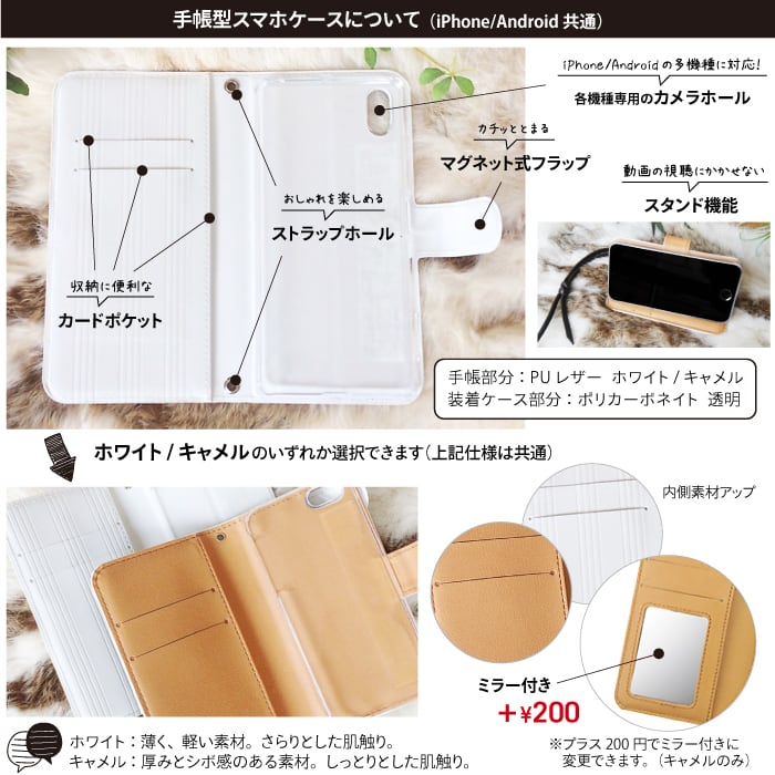 手帳部分:PUレザー(合皮)/ホワイト・キャメル