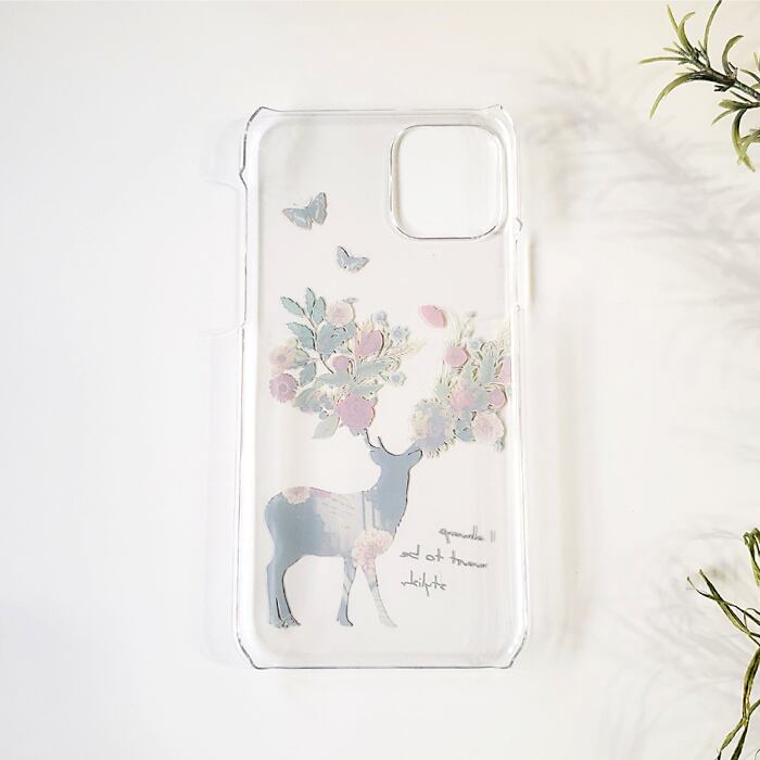 人気デザイン「鹿 コラージュ」のクリアケースです。