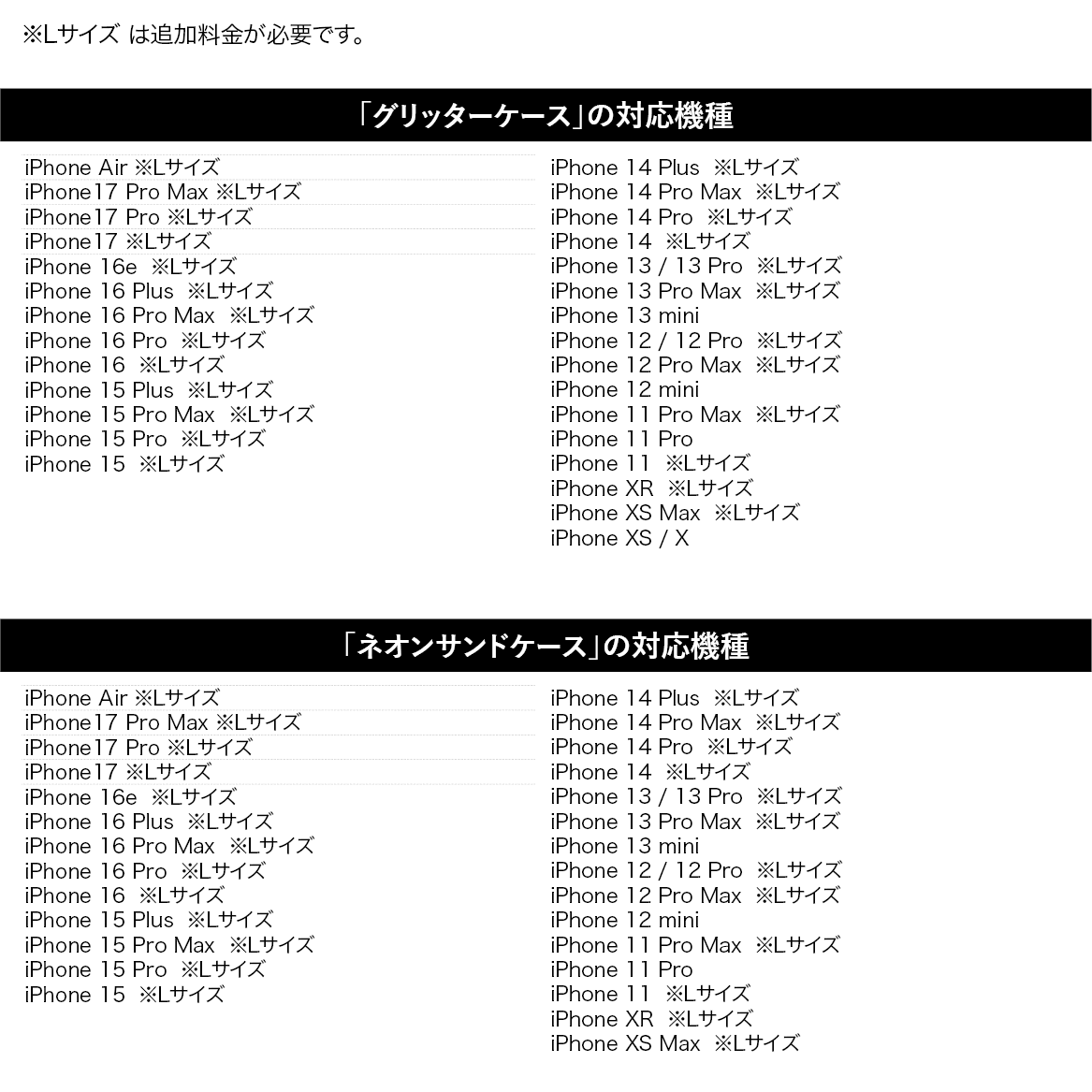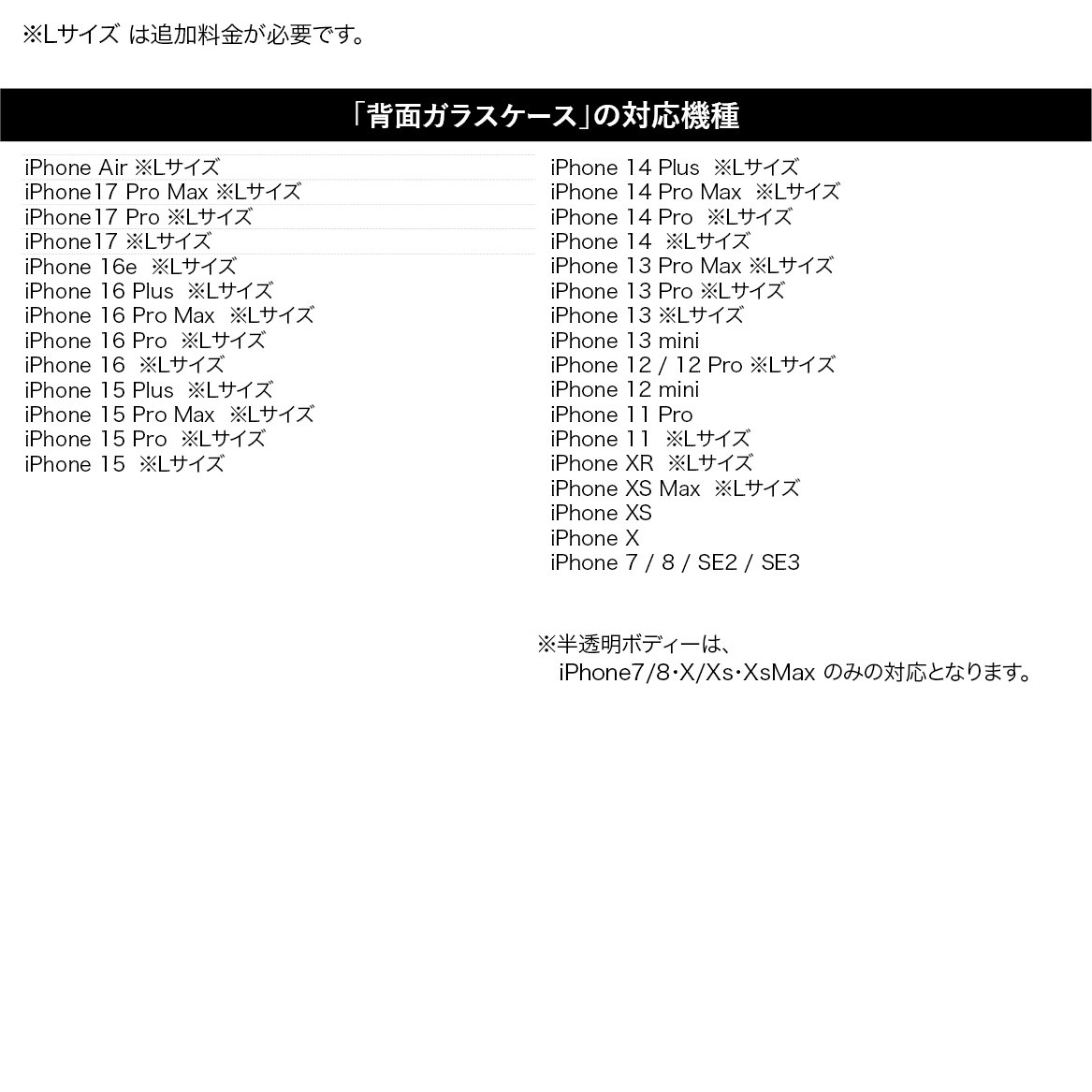 ※Lサイズと記載のある機種は、ご購入時にLサイズのオプションをご選択ください。